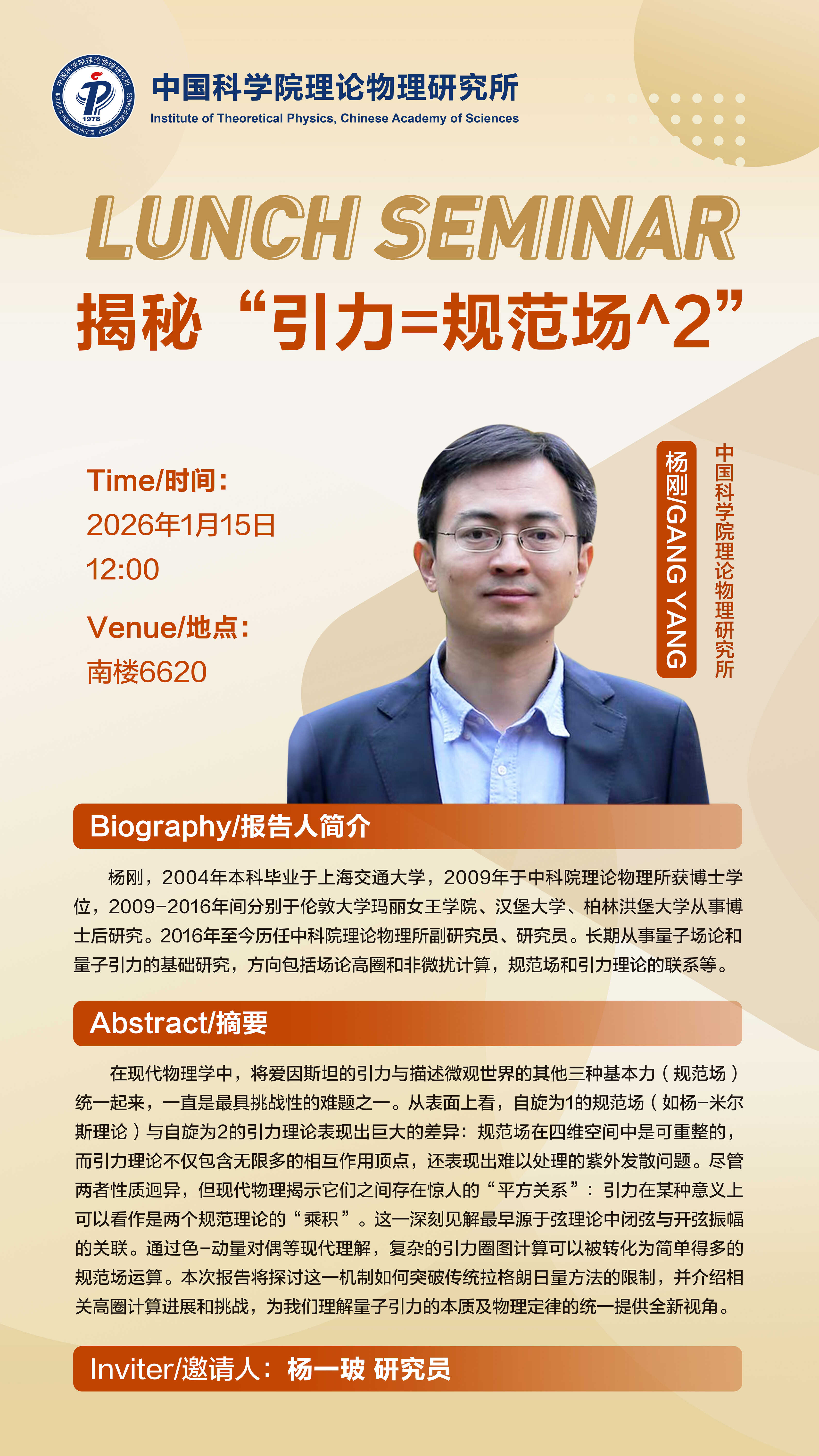 - Speaker报告人 杨刚/Gang Yang (中国科学院理论物理研究所)