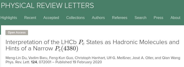原文链接:https://journals.aps.org/prl/abstract/10.1103/PhysRevLett.124.072001 https://doi.org/10.1016/j.ppnp.2020.103757