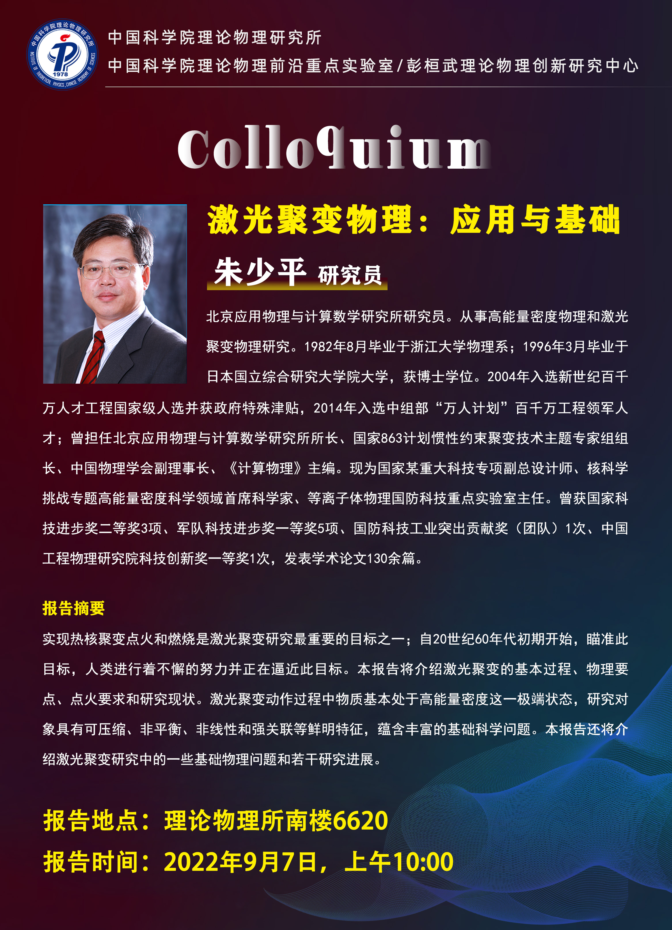 - Speaker报告人 朱少平 研究员 (北京应用物理与计算数学研究所)