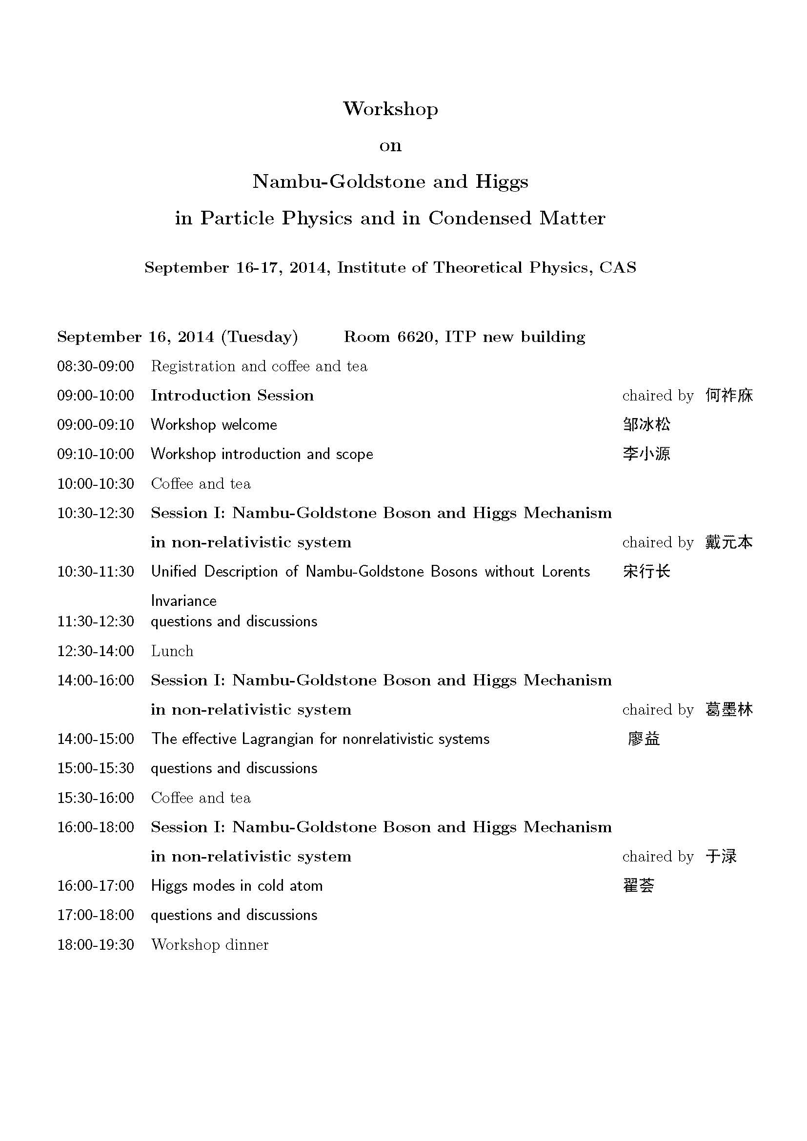 Workshop on Nambu-Goldstone and Higgs in Particle Physics and in Condensed Matter