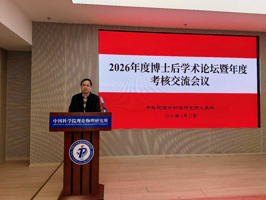 4月21日,中国科学院理论物理研究所成功举办2026年度博士后学术论坛暨博士后年度考核交流会议。本次论坛采用线下线上相结合的方式举行,博士后、合作导师及部分研究生共同参加。副所长、纪委书记周宇峰研究员出席论坛并致辞。