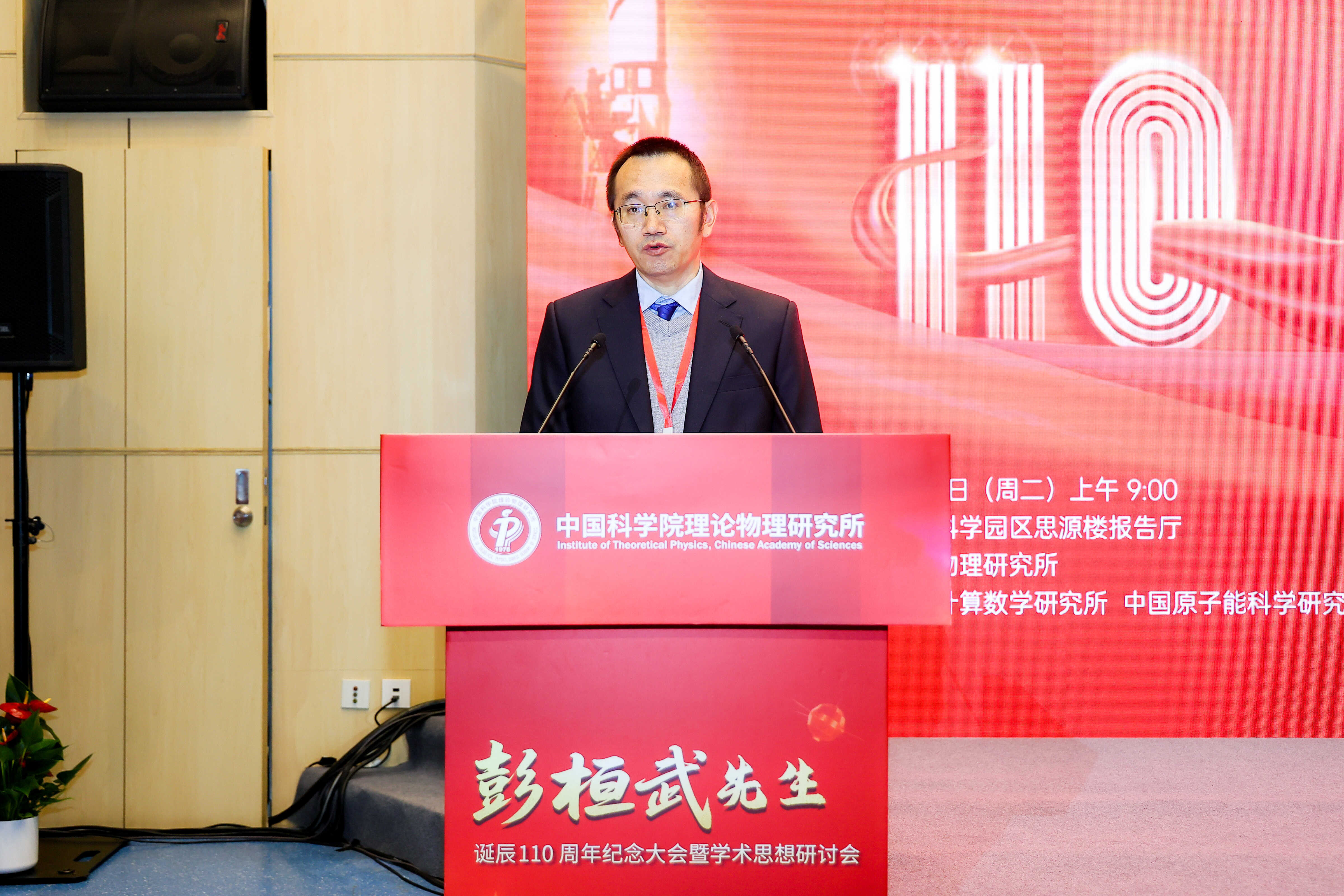 中国科学院理论物理研究所所长周善贵研究员在致辞中回顾了彭桓武先生对理论物理所的初创做出的丰功伟绩,他表示新时代理论物理所人将沿着彭桓武先生的足迹继续前进,建立宽松民主的学术氛围,秉承开放合作的发展之路,开展面向世界科学前沿、面向国家战略需求的理论物理研究。