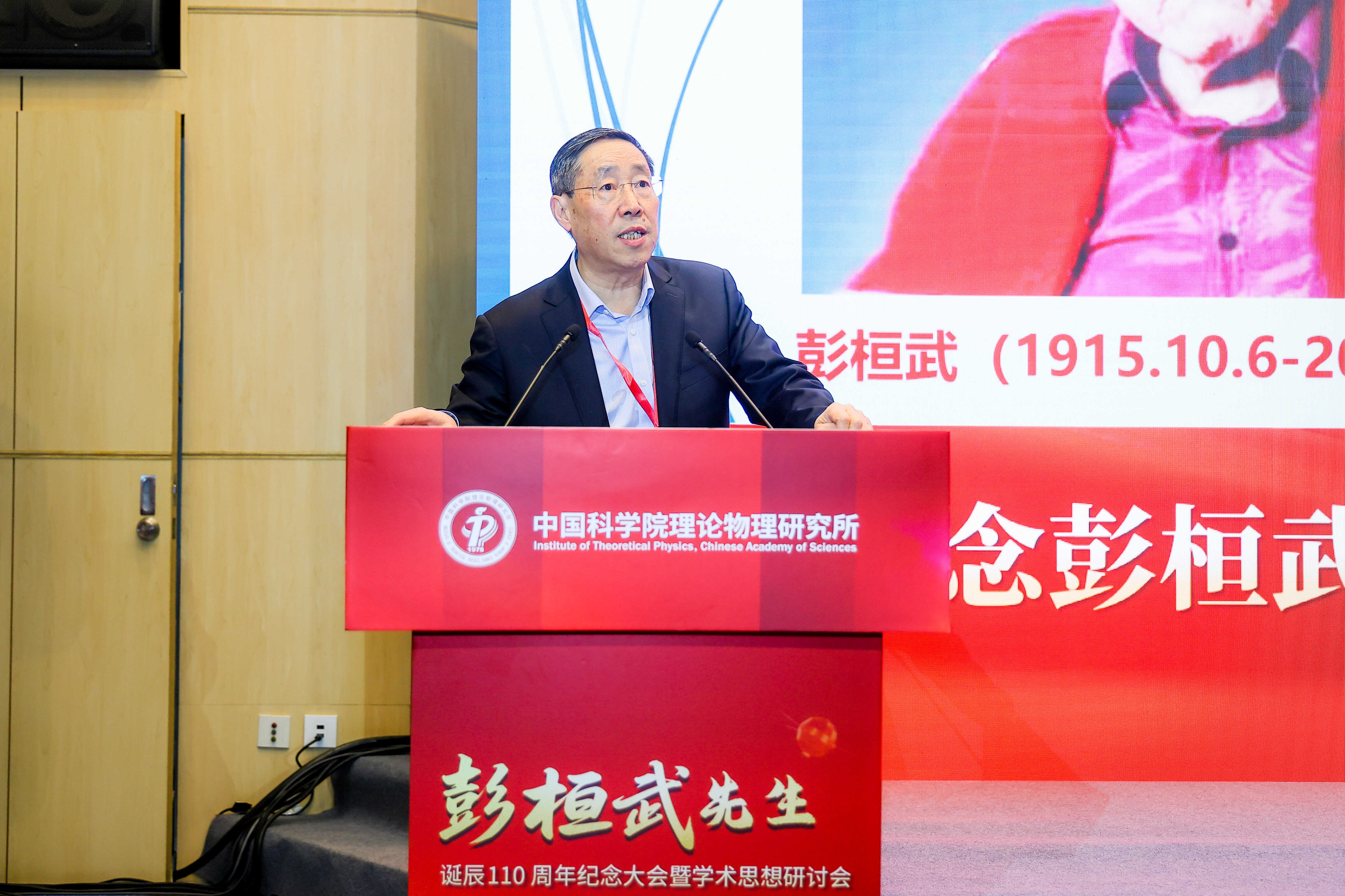 开幕式由中国科学院理论物理研究所副所长周宇峰研究员主持。中国科学院副院长、中国科学院大学校长周琪院士首先致辞,他表示,纪念彭桓武先生,最好的方式就是弘扬他的科学精神,传承他的崇高品德,接续奋斗伟大事业,要加强使命驱动的建制化基础研究,加快打造原始创新策源地,加快突破关键核心技术,努力抢占一批科技制高点。
