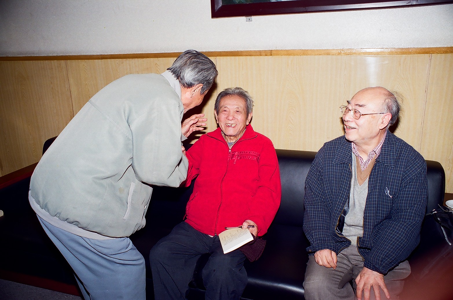 2001年,张兴钤八十华诞时彭桓武、于敏前来祝贺