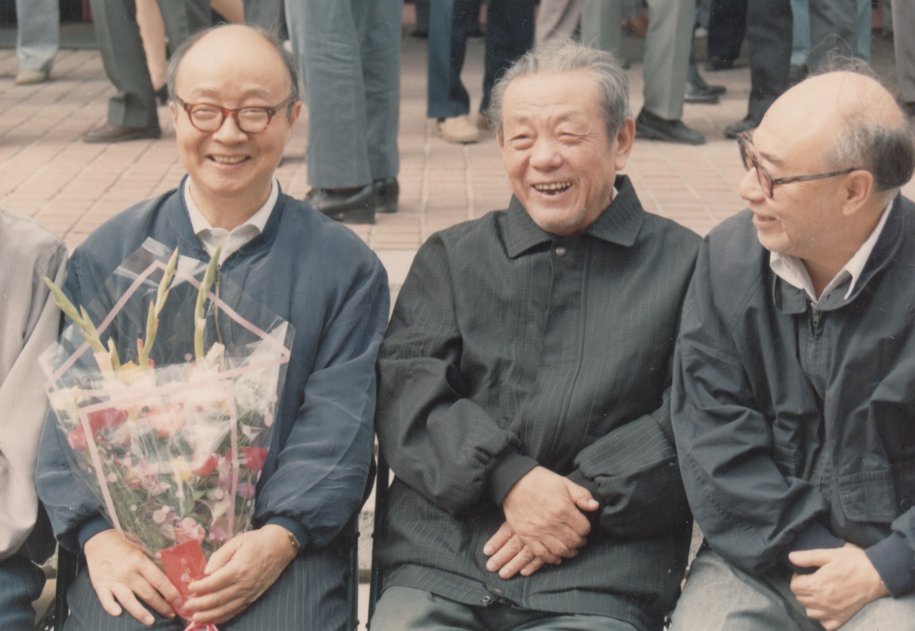 黄祖洽(左一)、彭桓武(左二)、于敏(右一)