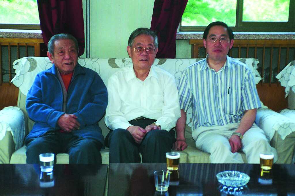 彭桓武(左一)、周光召(左二)、吴岳良(右一)三代师生合照