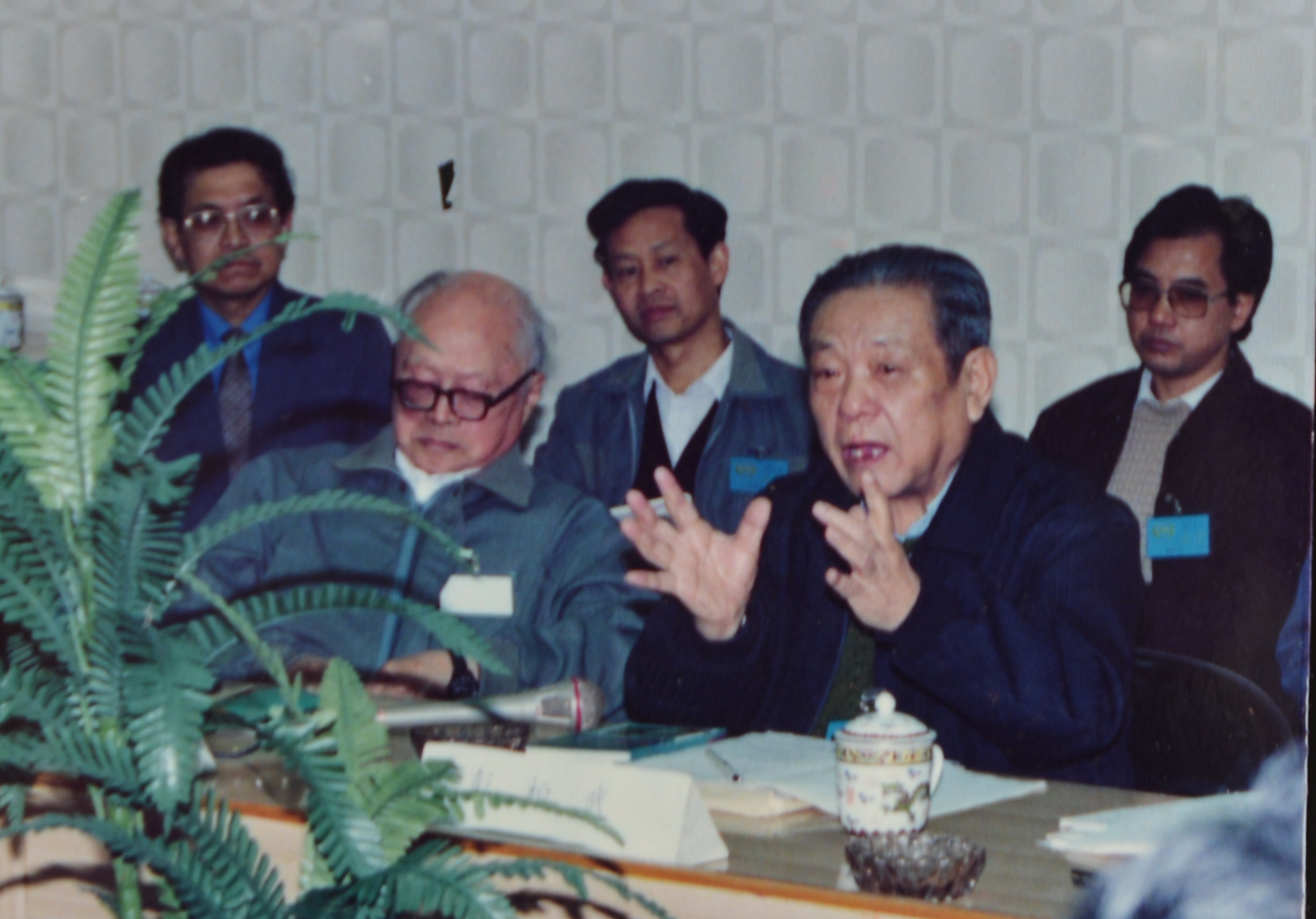 黄祖洽(左一)、彭桓武(左二)、于敏(右一)