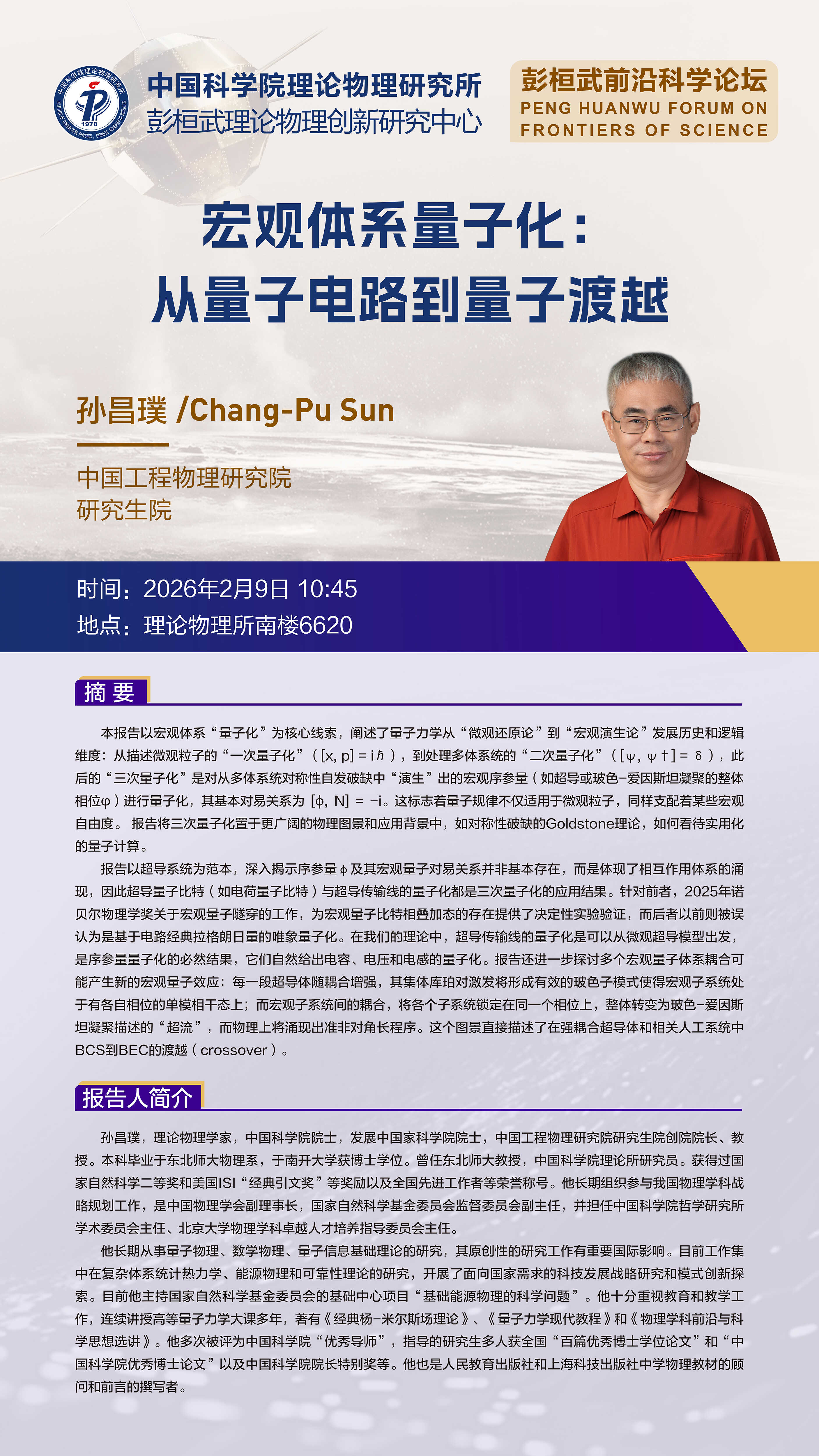 - Speaker报告人 孙昌璞/Chang-Pu Sun (中国工程物理研究院研究生院)