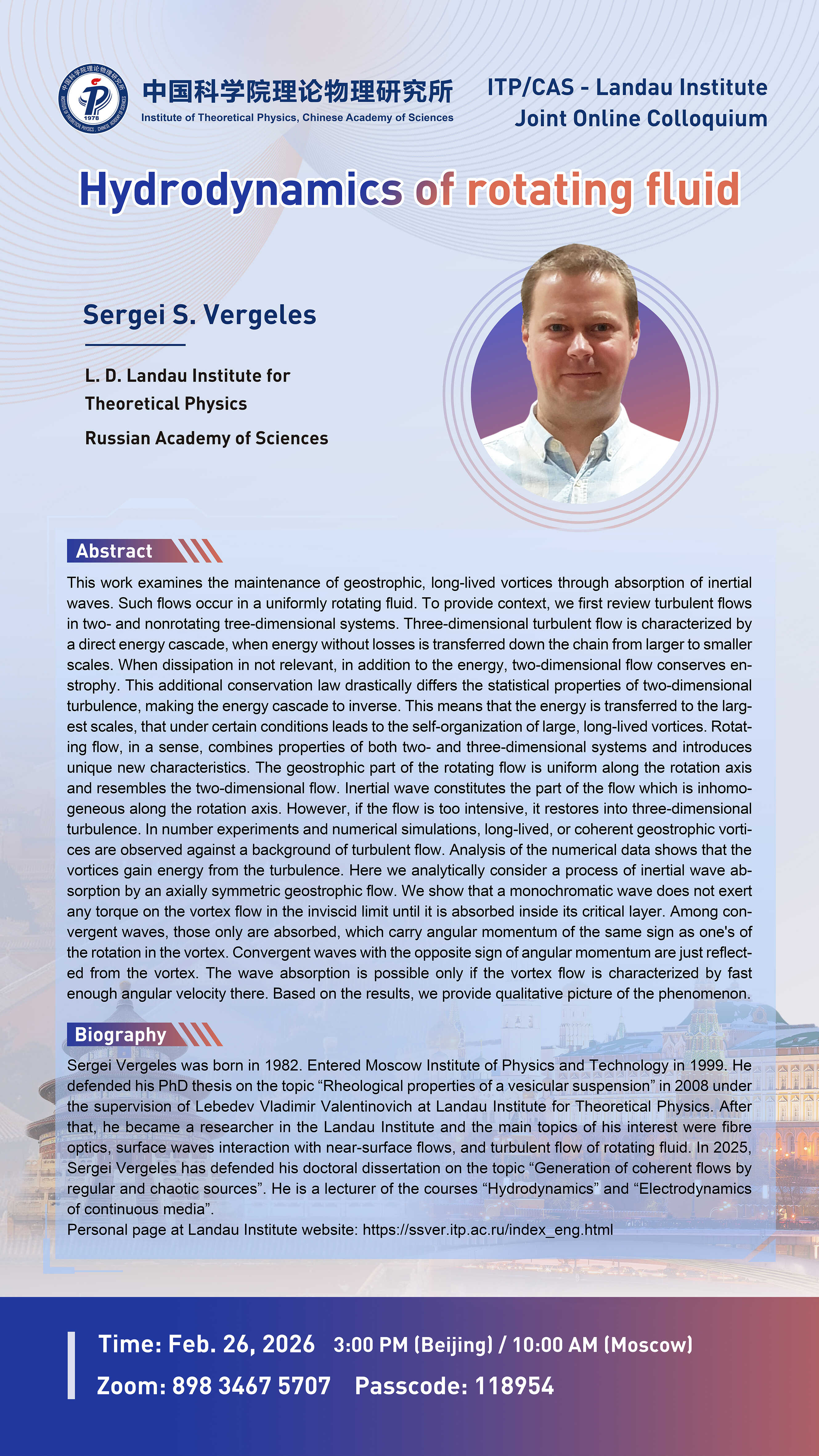 - Speaker报告人 Sergei S. Vergeles (L.D. Landau Institute for Theoretical Physics, Russian Academy of Sciences)