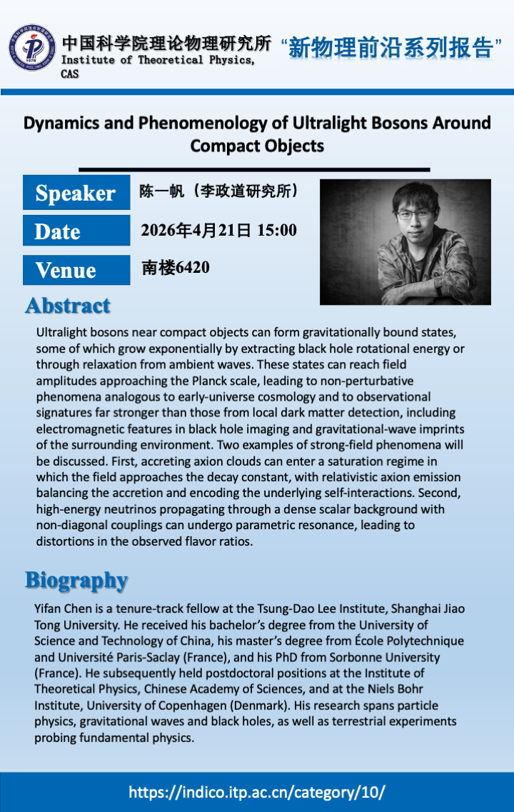 - Speaker报告人 陈一帆/Yi-Fan Chen (李政道研究所)